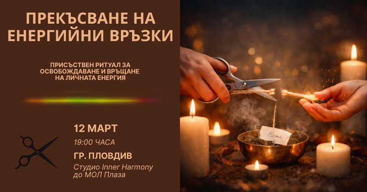 четвъртък, 26 февруари, 2026 г.Благодаря на Катерина от сърце! Отидох на събитието без очаквания, а се случи толкова много. Освободих потиснати емоции, стигнах до дълбоко осъзнаване на важни за мен истини. Енергията на Катерина се усеща като чиста любов - вярвам, че е от хората с дарба да помагат и да лекуват. И нещо много важно за мен - днес усещам нервната си система в покой. Всъщност не е само усещане, а измерен факт - подобрението се показва на стрес монитора във фитнес гривната ми. Хиляди благодарности и до нови срещи!