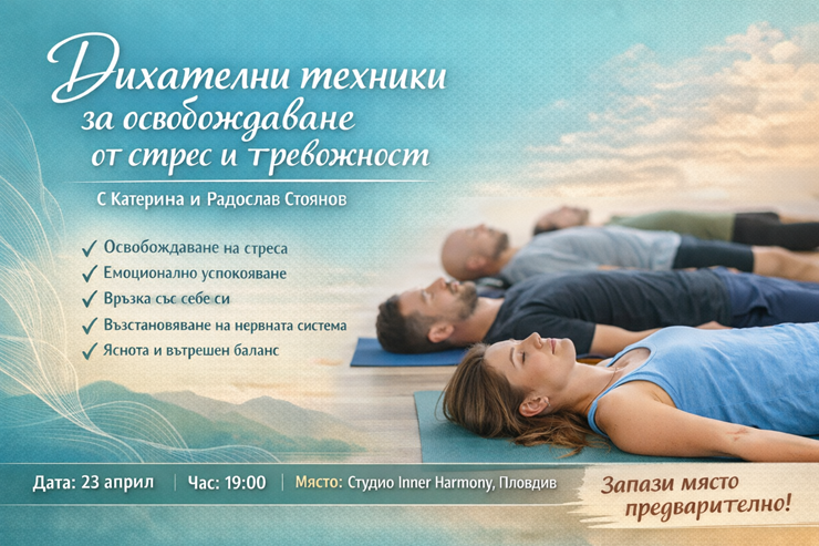 Дихателни техники за освобождаване от стрес и тревожност с Катерина и Радослав Стоянов [Пловдив]